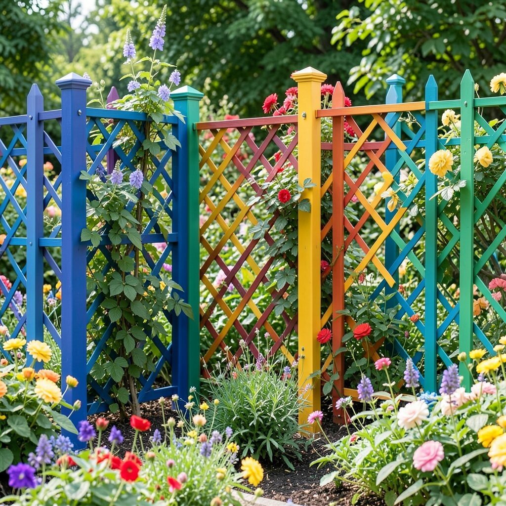 Trellises aren’t just for climbing plants; they can be a focal point of color. Paint them in bold shades to contrast with greenery. They guide your plants while enhancing your garden’s design.