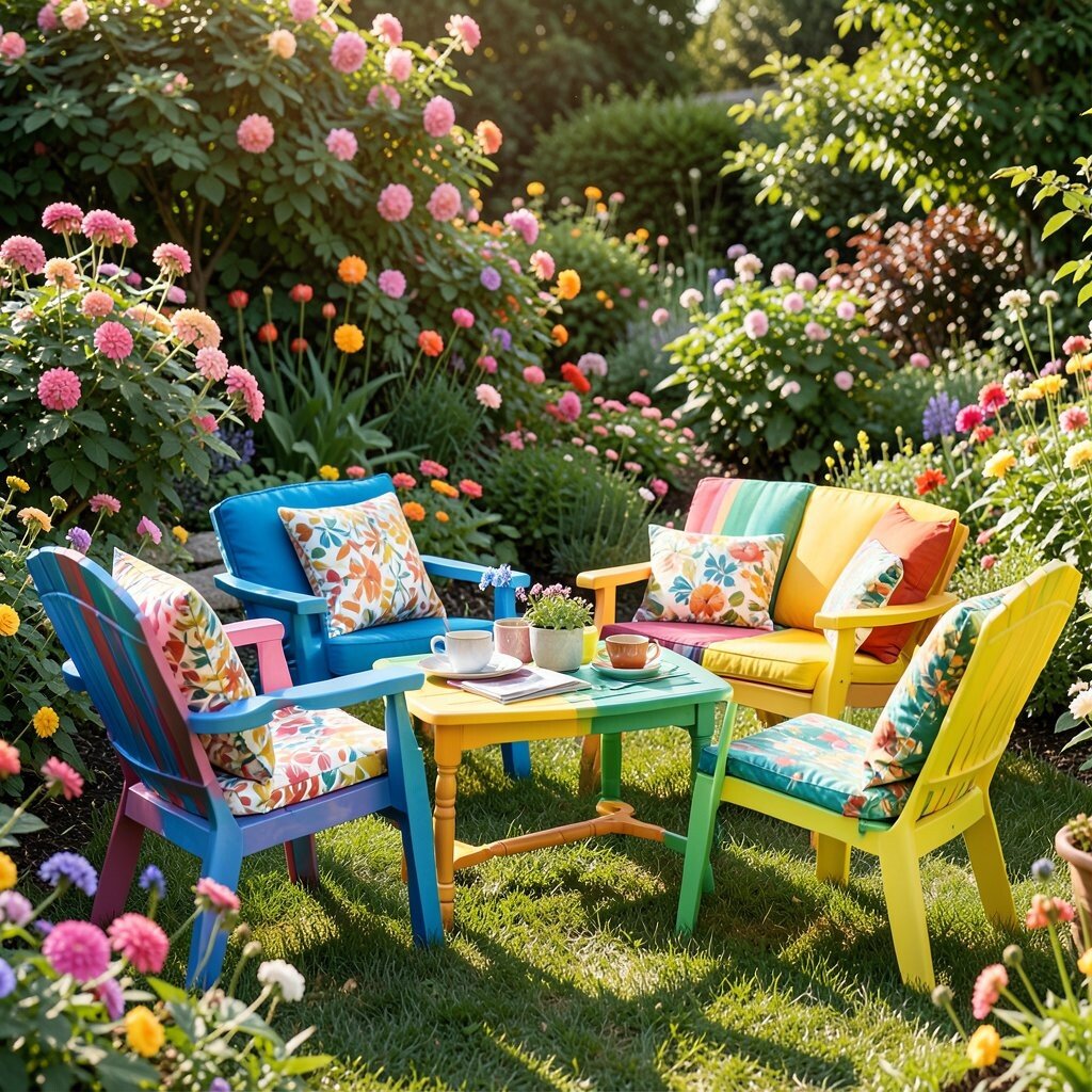 Outdoor furniture in bright hues can transform your seating area. Think colorful chairs, tables, or cushions. They invite you to sit and enjoy the beauty of your garden.