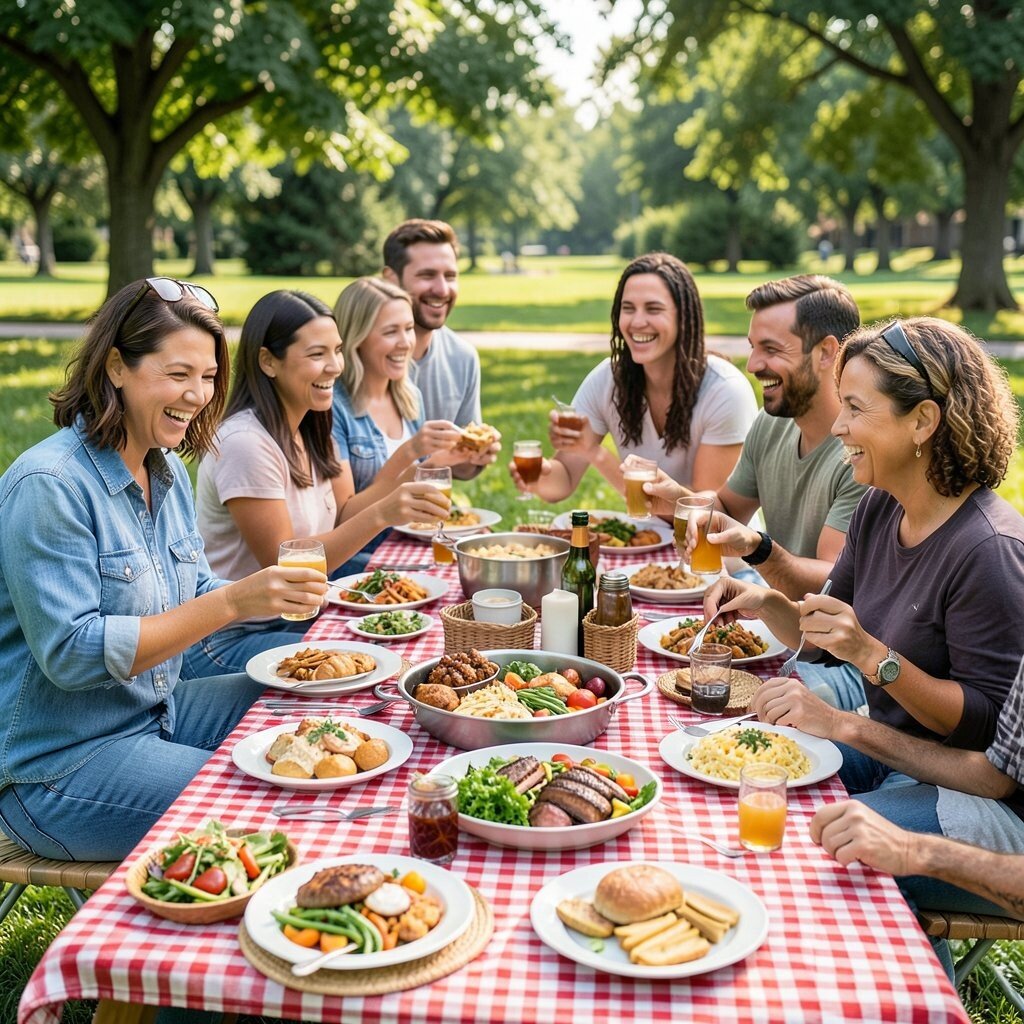 Each potluck is unique, with dishes representing the community’s culinary heritage. The cost is low, as everyone contributes a dish or drinks. Personalize it with themed picnics, like international cuisine or BBQ.
