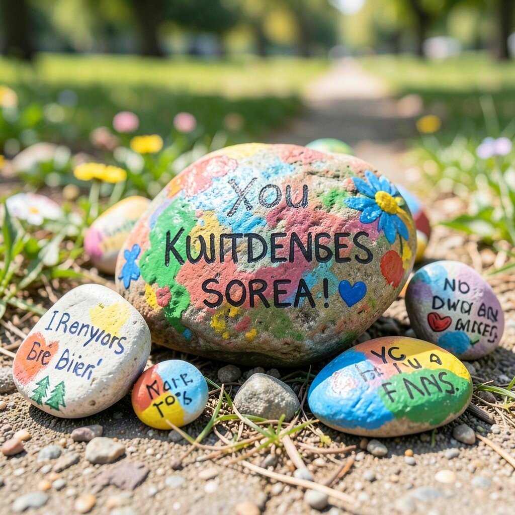 Imagine stumbling upon a colorful rock with a sweet message during your walk. That’s what painted kindness rocks are all about! You paint simple, kind words or cheerful images on small rocks and leave them in parks, trails, or sidewalks for people to find.