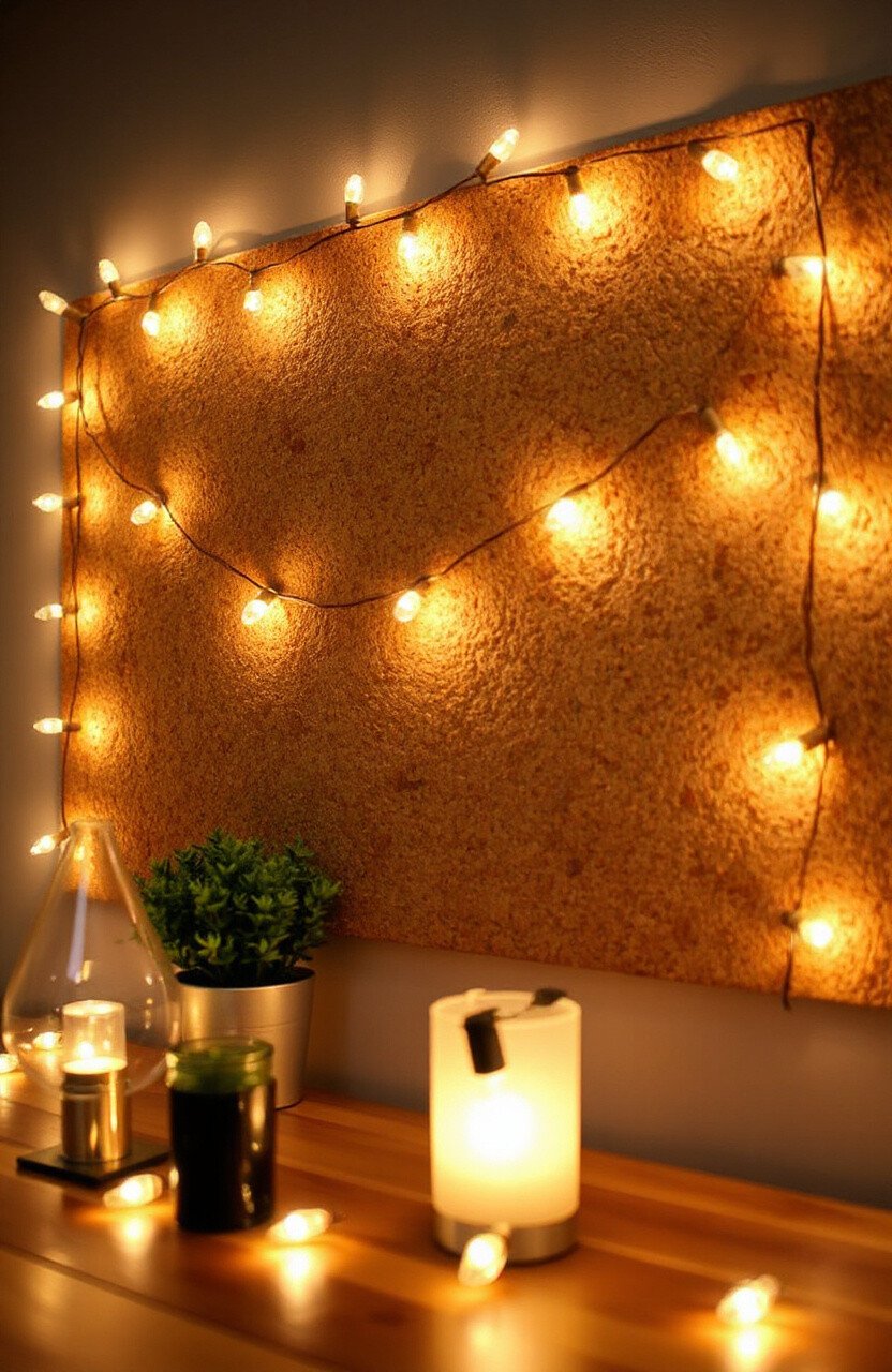 Wrap string lights around your cork board to give it a warm, inviting glow. This idea is not only visually appealing but also functional for creating a cozy atmosphere.