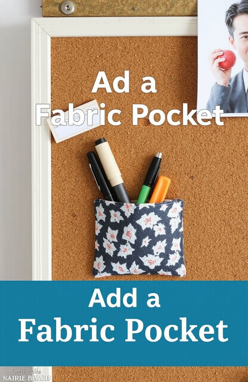 Sew or glue a fabric pocket to your cork board for holding pens or notes. It’s both decorative and handy.