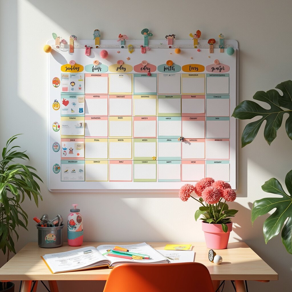 Create a colorful calendar to keep track of your tasks. Use different colors for different types of tasks, like work, personal, or fun activities. This makes planning visually engaging and fun.