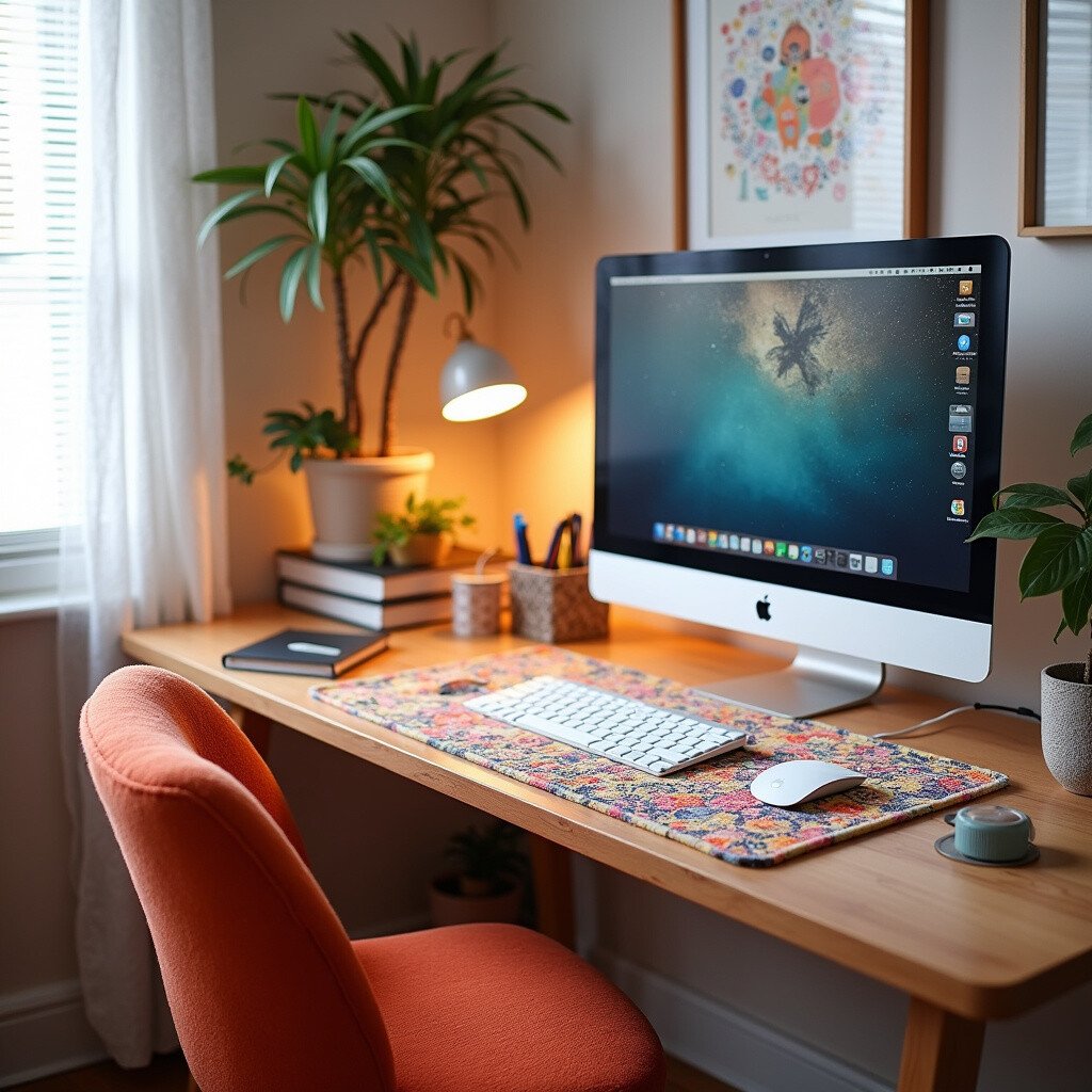 A desk mat in a bright hue or with a fun pattern can change the whole look of your workstation. It’s like giving your desk a new outfit. Choose something that reflects your personality, whether it’s polka dots, stripes, or a bold solid color.