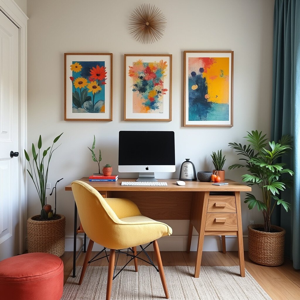 Wall art can set the mood of your workspace, making it a hub of inspiration. It’s an easy way to express your style and can be changed seasonally for a fresh feel. Plus, it’s a great conversation starter if you have visitors.