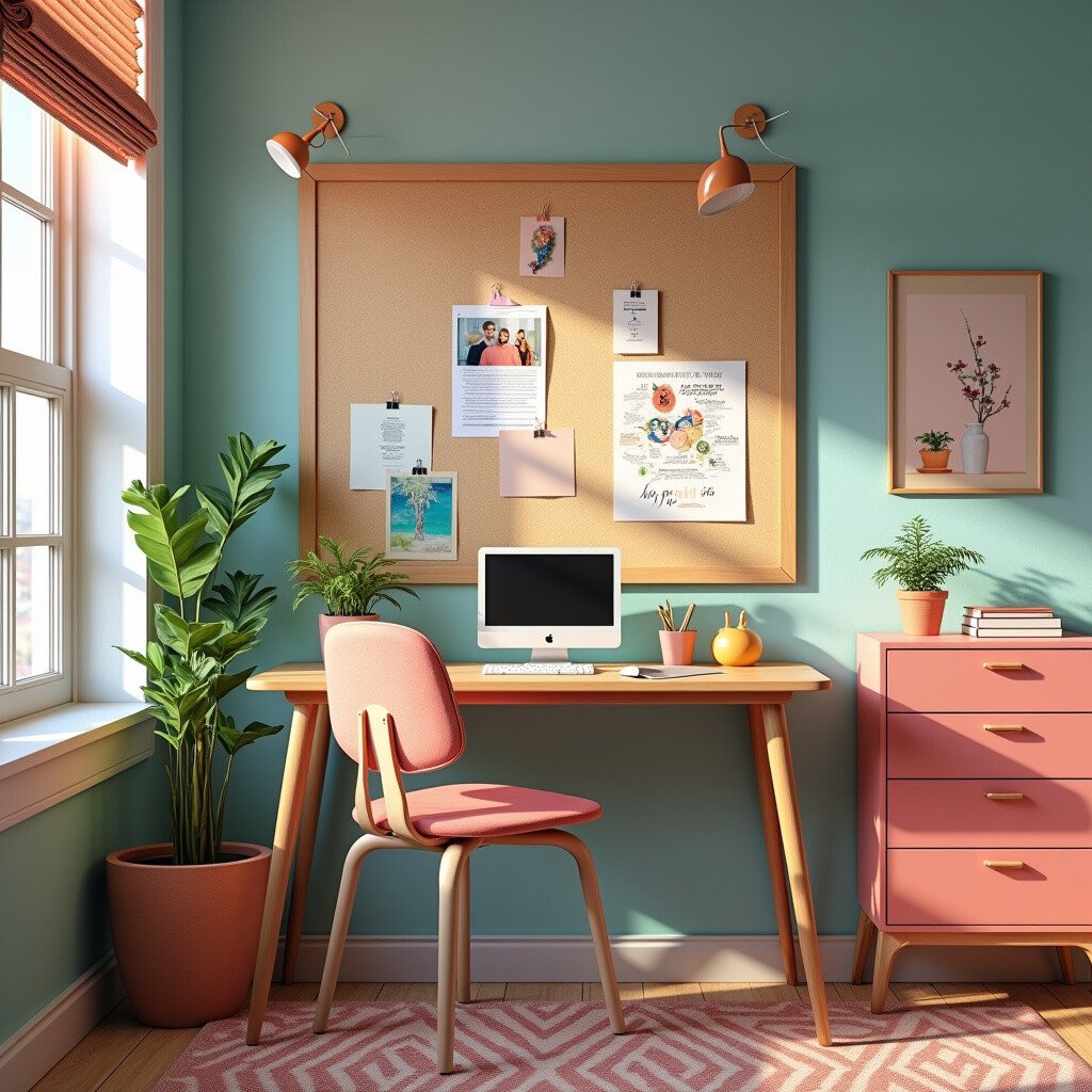 A bulletin board can be more than just functional. Choose one in a bold color or with a fun frame to make it a focal point of your workspace.