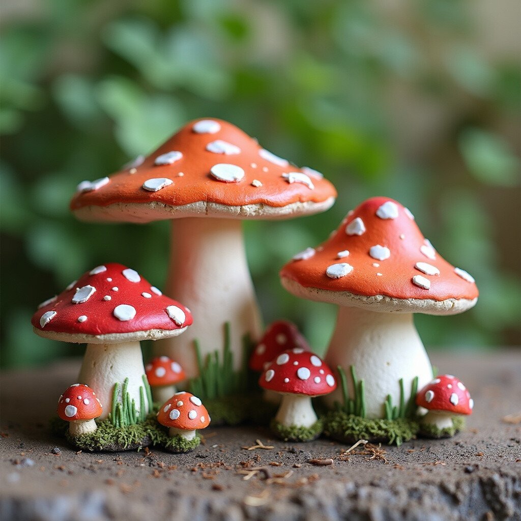 2. Hand-Painted Clay Mushrooms