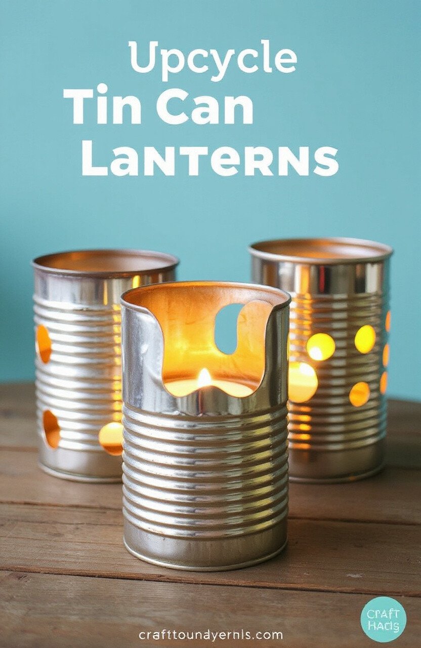 Punch holes in empty tin cans to create lanterns. Add a candle inside for a charming, rustic glow. They’re perfect for outdoor gatherings or cozy indoor lighting.