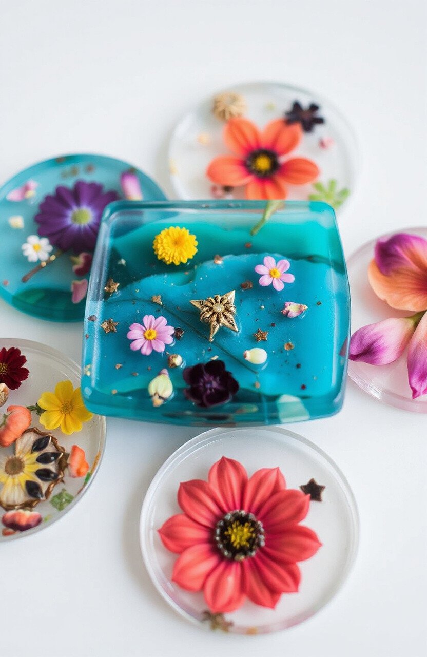 Resin coasters are not only practical but an art piece in their own right. You can embed flowers, glitter, or even tiny charms to create stunning designs.