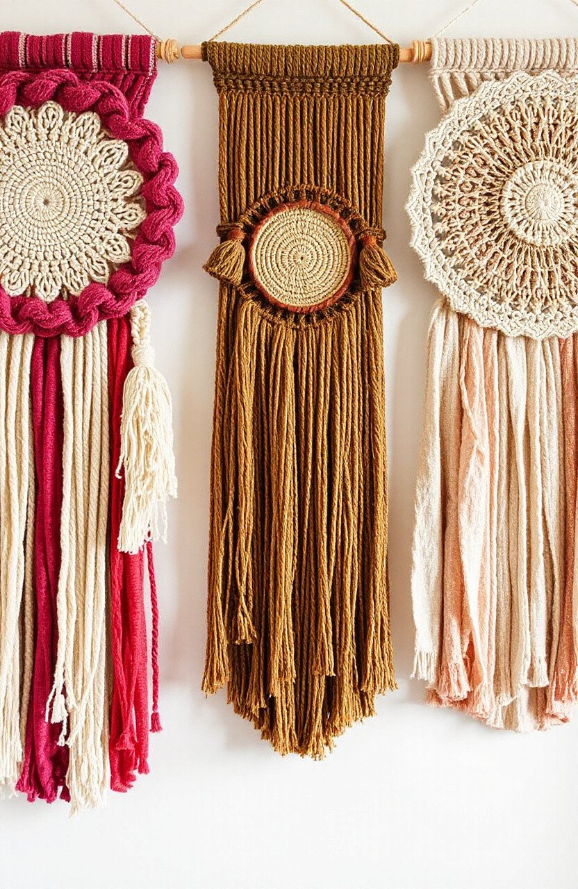 Use scrap fabrics, yarn, or even old clothes to create something new. They’re a fantastic way to showcase your favorite colors and patterns. Hang one in any room for an instant style upgrade.