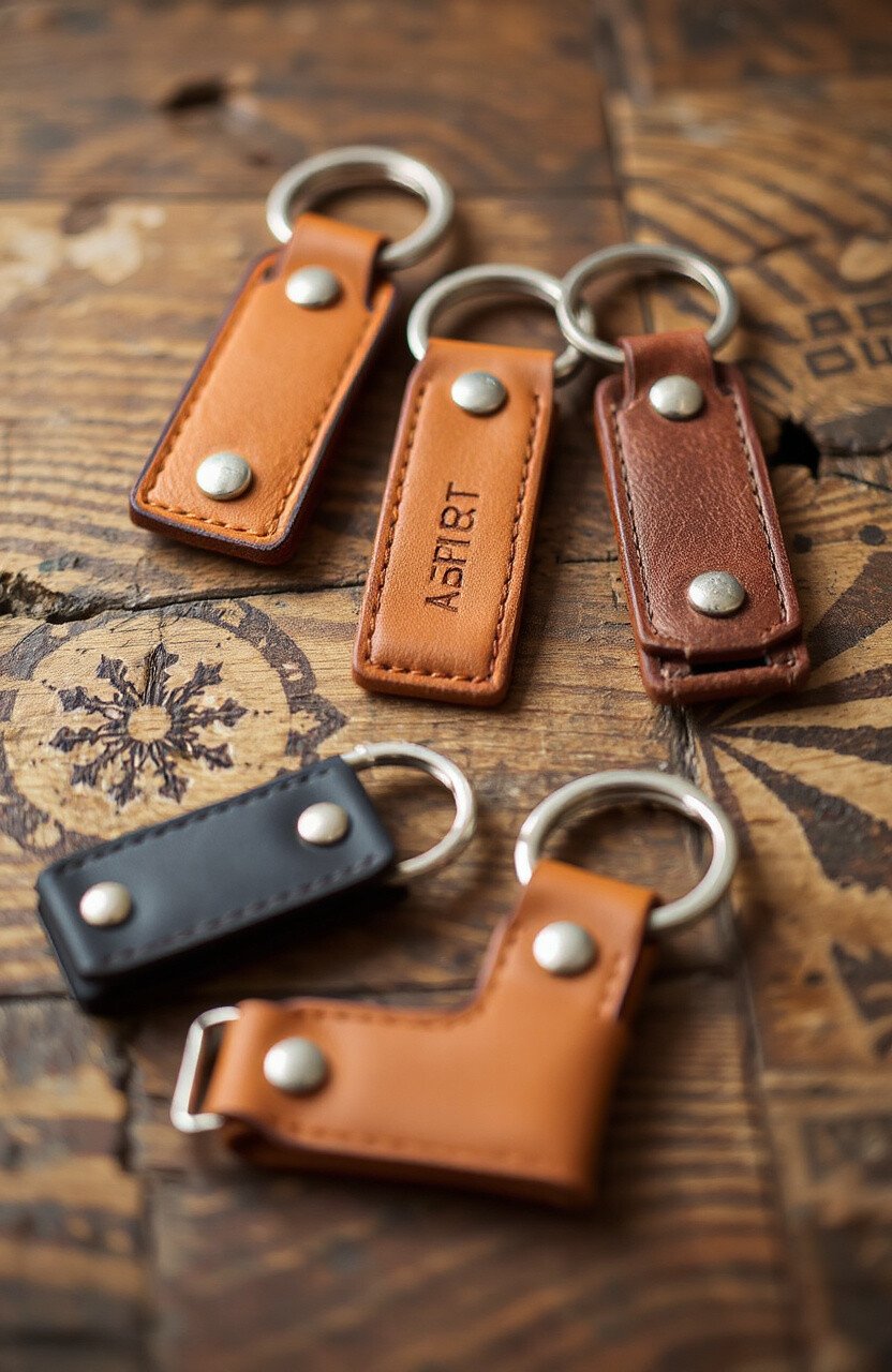Leather keychains are a chic way to keep track of your keys. Personalize them with initials or a favorite design.