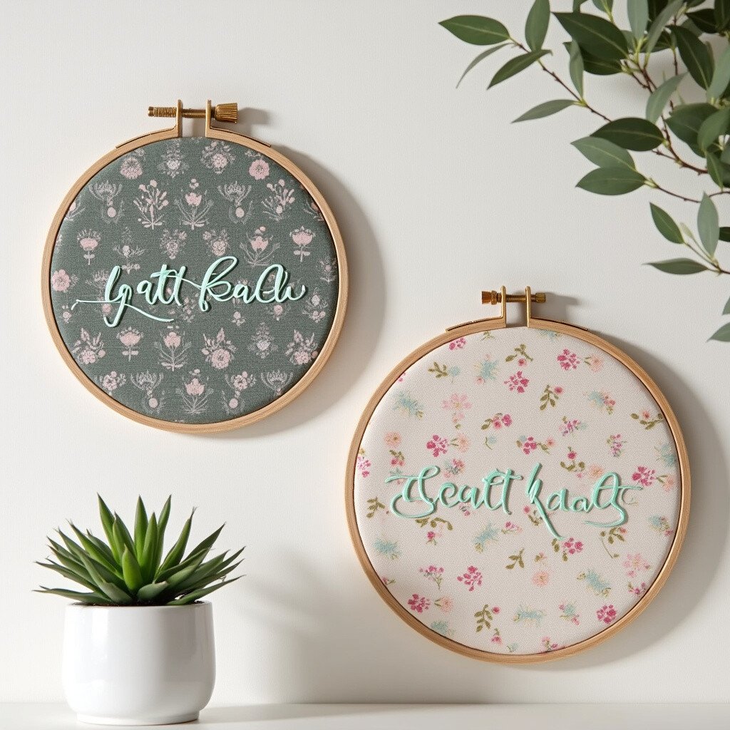 Embroidery hoops as labels? Why not! They add a crafty touch and are ideal for textile lovers.