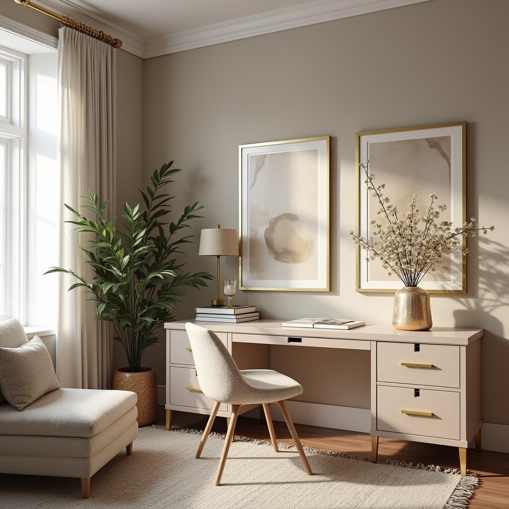 Use gold accents and luxurious textures. It’s an elegant and sophisticated space that inspires stylish creativity.