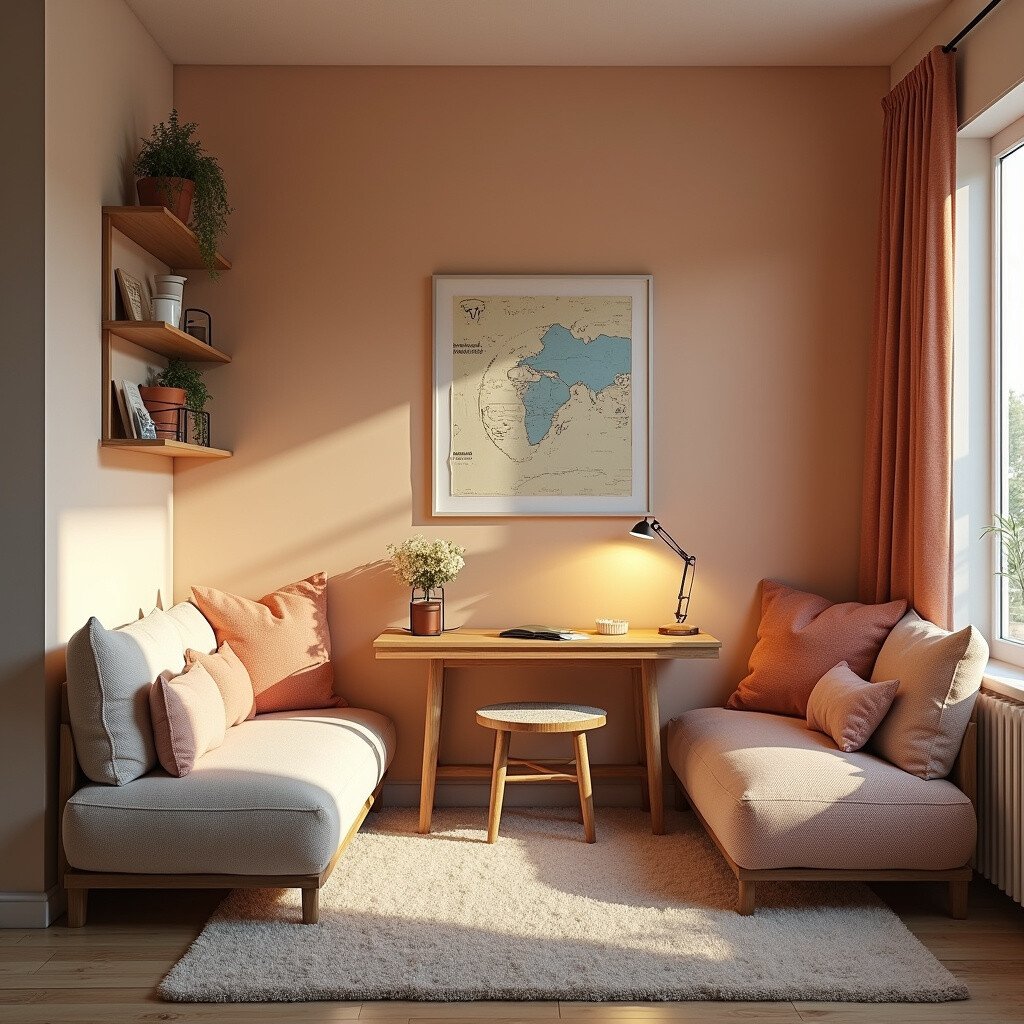 Imagine a snug corner filled with soft cushions and a small table. This layout is perfect for those who love intimate and quiet spaces. It’s like your own little world where creativity flows effortlessly.