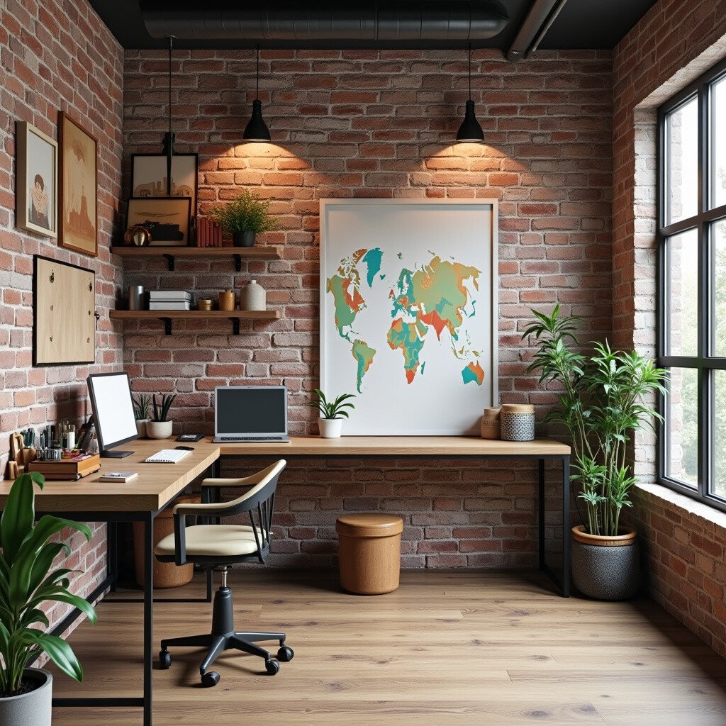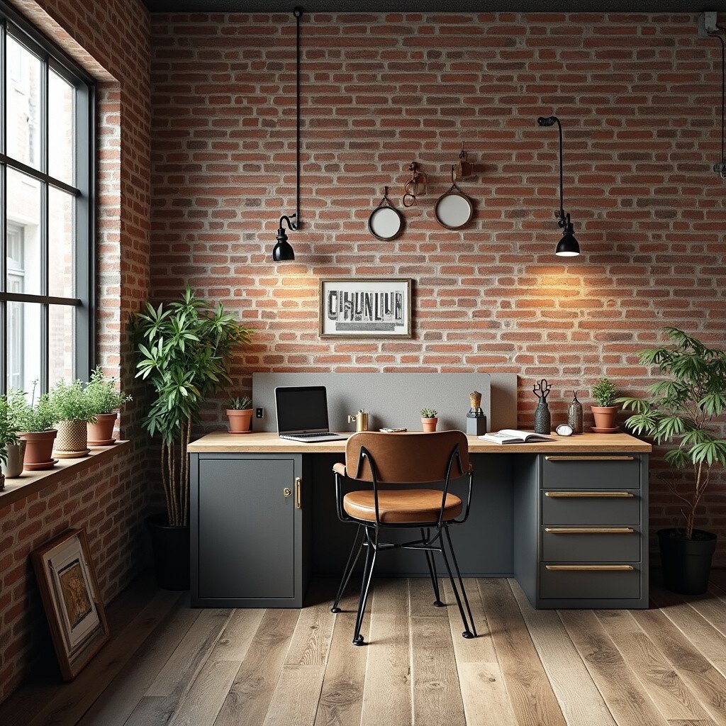 Use exposed brick and metal accents. It’s a trendy and inspiring space that encourages innovation and creativity.