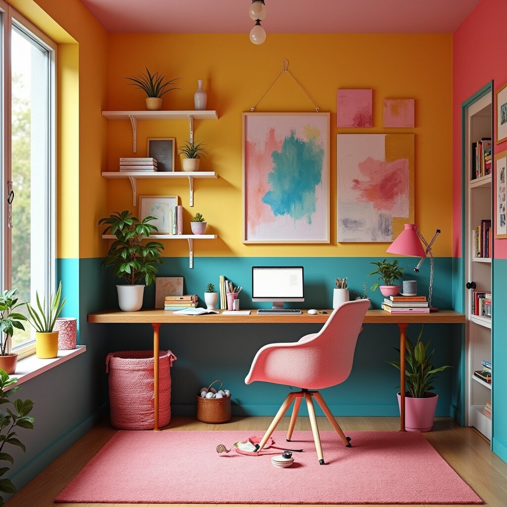 Imagine a craft room bursting with colors. This layout is for those who find energy and joy in vibrant hues.