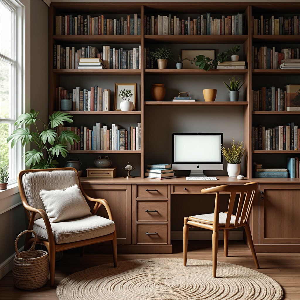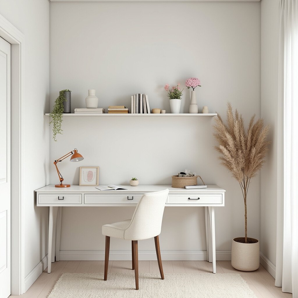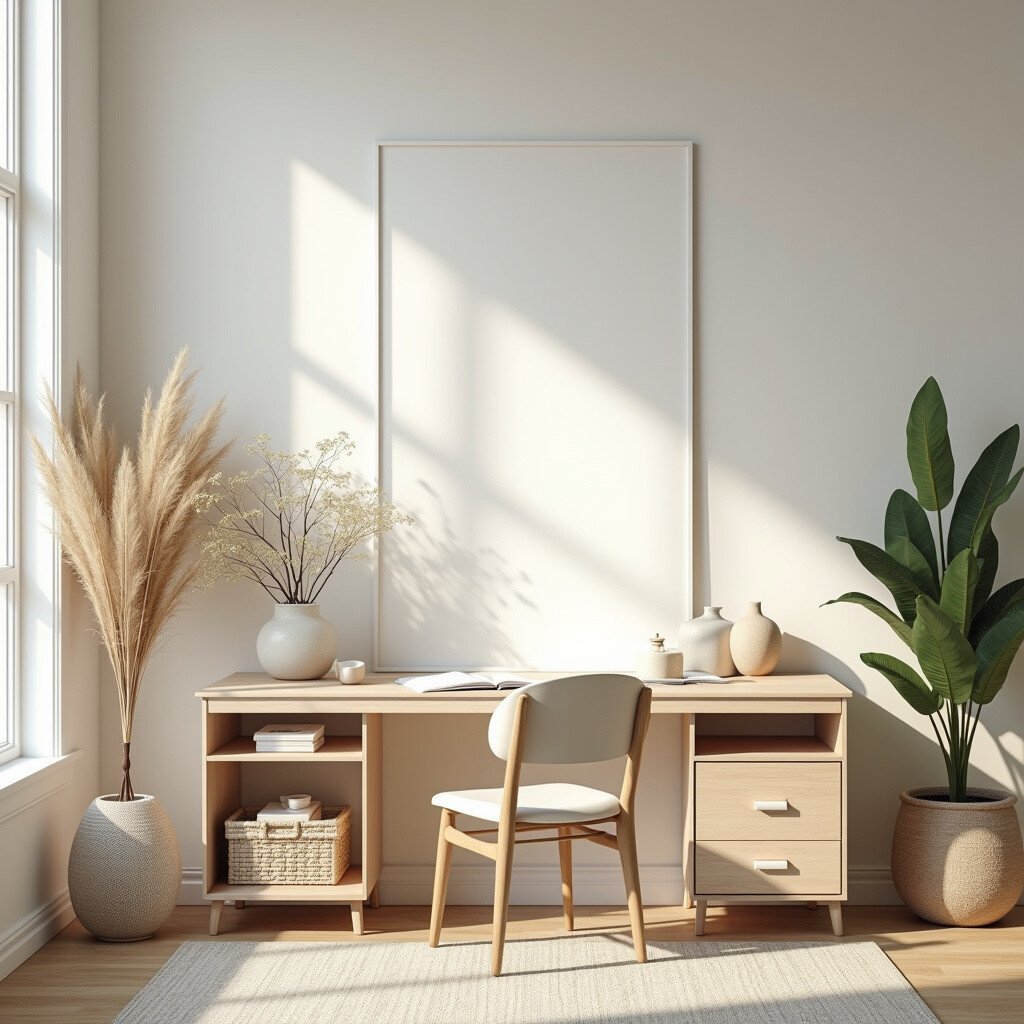 Use neutral colors and natural materials. It’s a calm and organized space that promotes creativity and clarity.