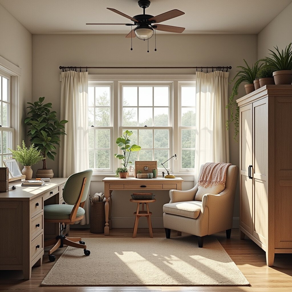 Embrace the charm of the countryside with a farmhouse-themed craft room. This layout is for those who love a cozy, homey feel.