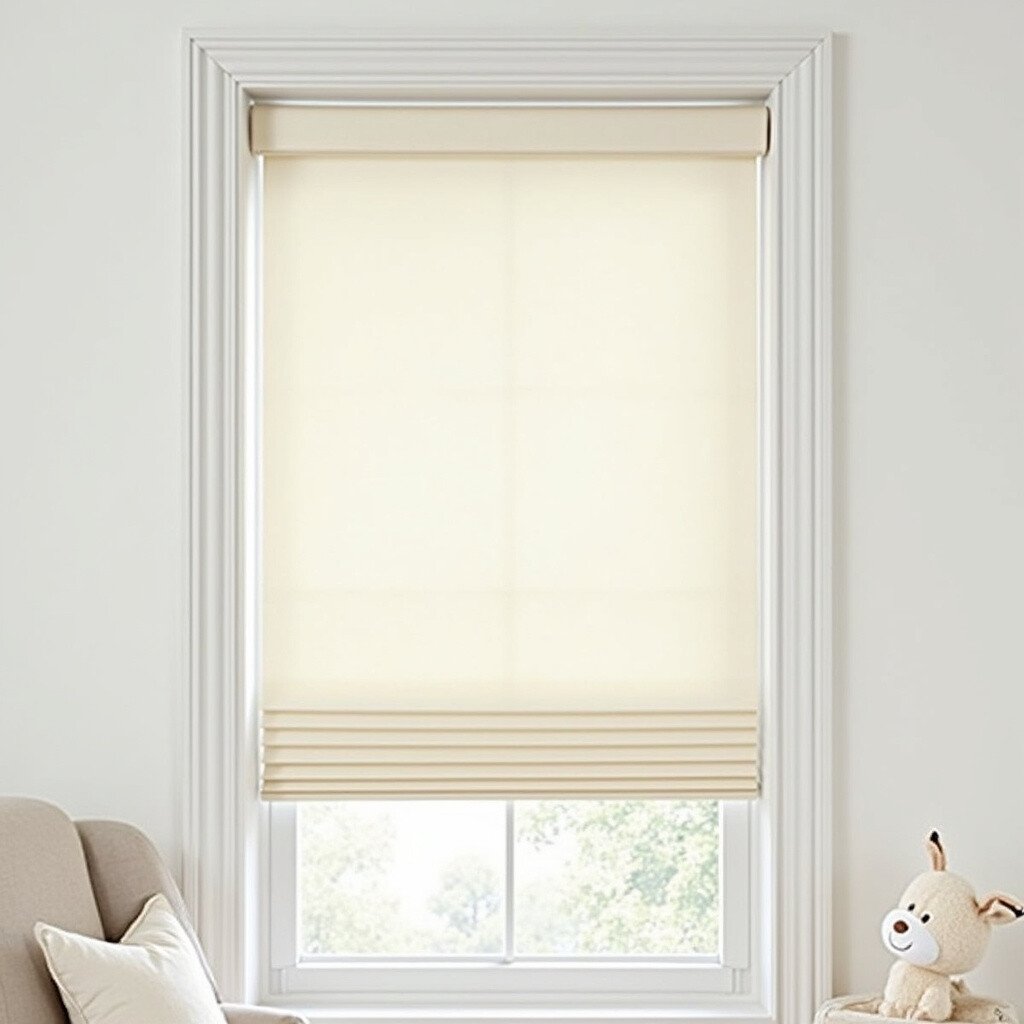 Install window treatments in cream white for a polished look. Blinds or shades offer privacy and light control. They complete the look of the nursery.
