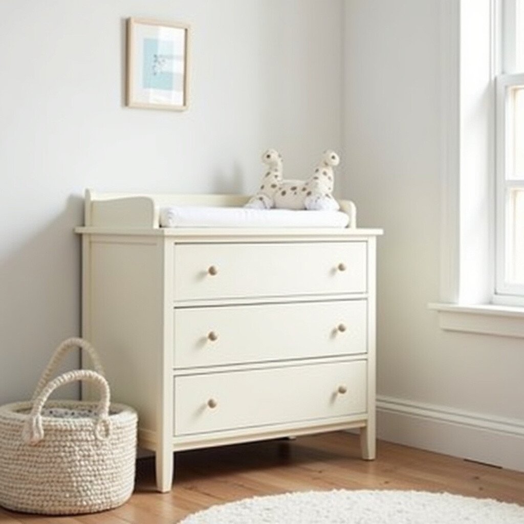 A cream-colored changing table is both functional and stylish. It provides a dedicated space for diaper changes. This makes it an essential piece in any nursery.