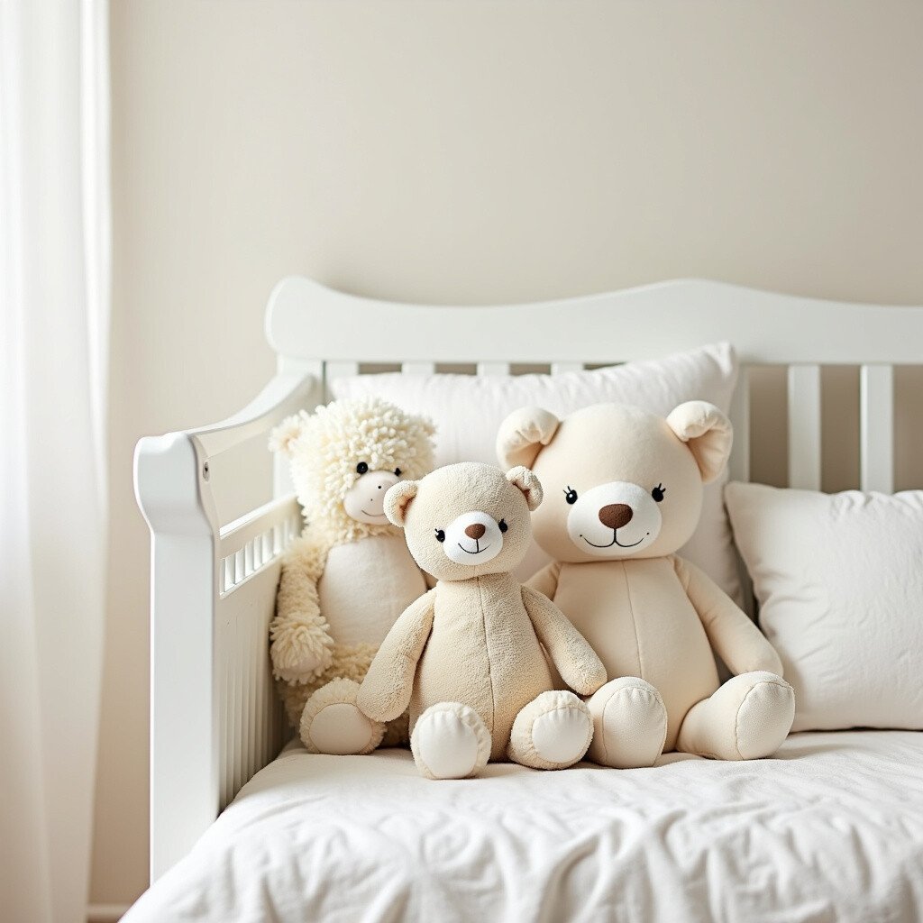 Include stuffed animals in cream tones for cuddly companions. They add softness and playfulness to the nursery. Stuffed animals are classic nursery staples.