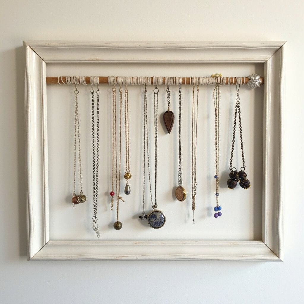 Keep your jewelry tidy with a handmade organizer. Use a picture frame and some wire or lace to hang earrings. Add small hooks for necklaces and bracelets.