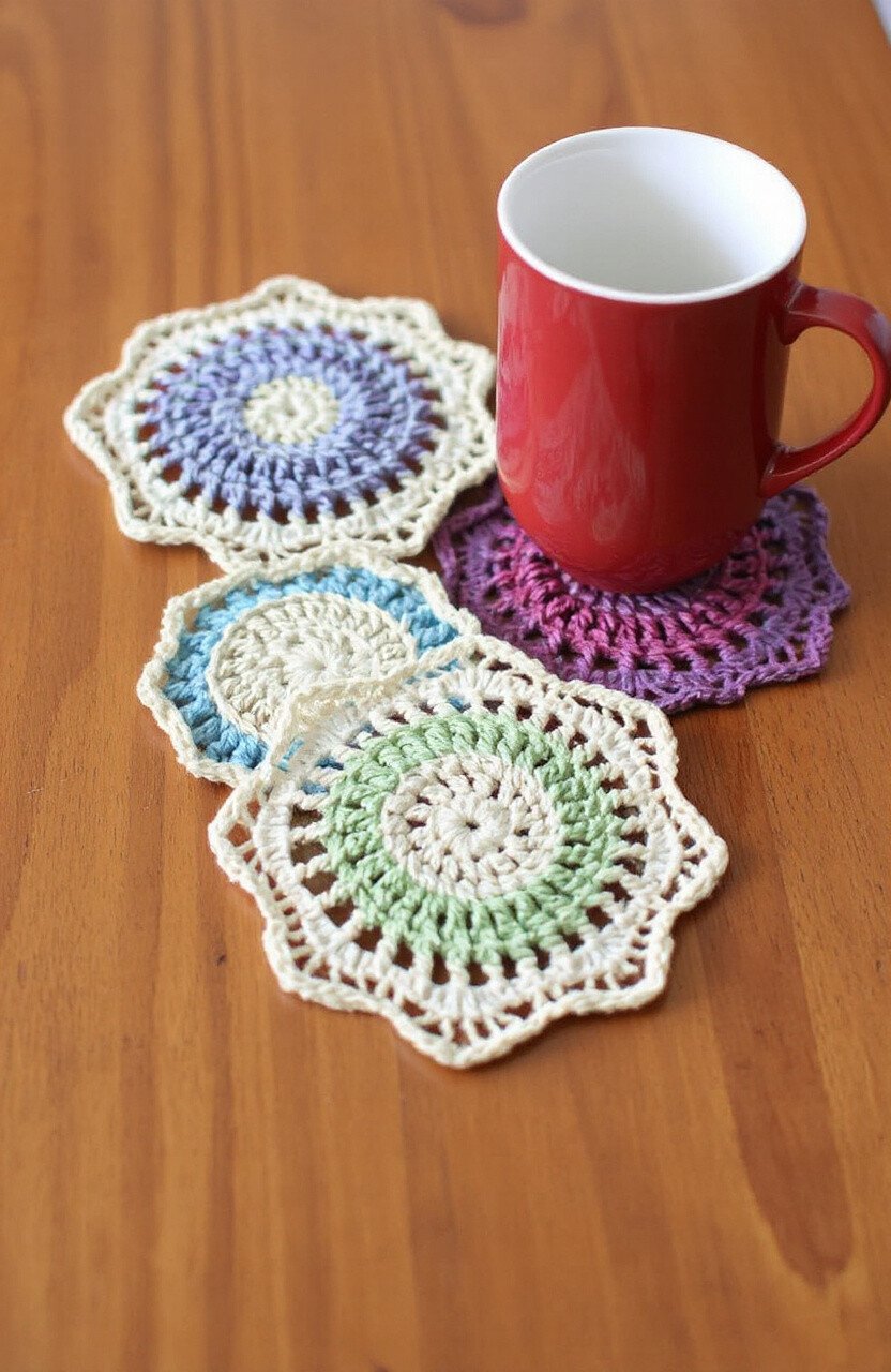 Crochet coasters add a personal touch to your coffee table. They protect surfaces while adding a splash of color and texture.