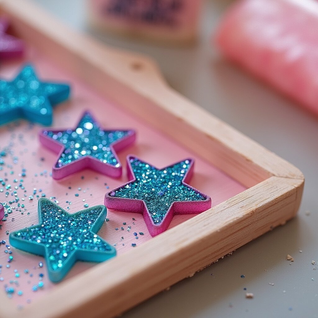 These charms are perfect for adding sparkle to your day. You can make them in different shapes like stars, hearts, or circles. The best part? You get to mix and match glitter, creating a charm that’s uniquely yours.