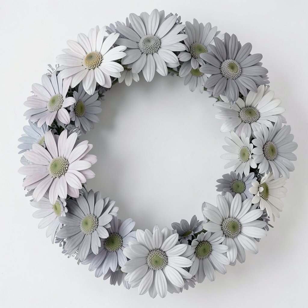 A wreath with gray daisies can add sophistication to any space. Ideal for office or study areas.