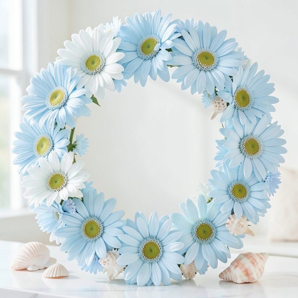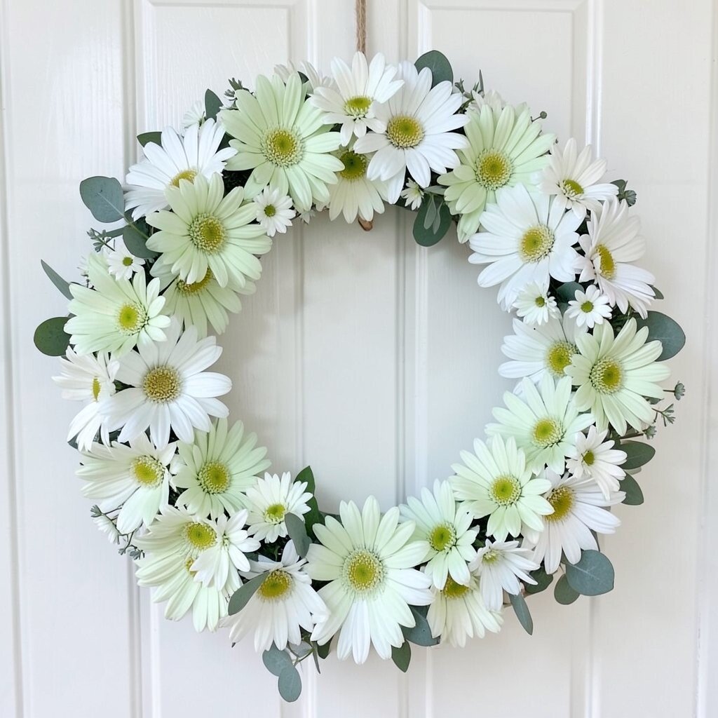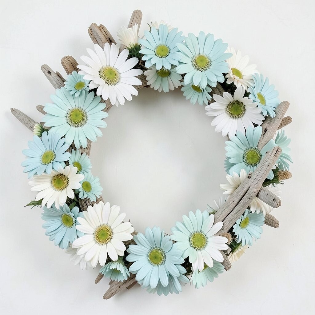Create a wreath with seafoam daisies for a beachy vibe. Ideal for relaxation spaces or coastal homes.