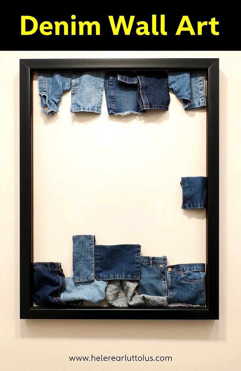 Get creative with denim wall art. Use different shades and textures of denim to create a unique piece of art for your home. Cut, arrange, and sew the pieces together for a stunning display.