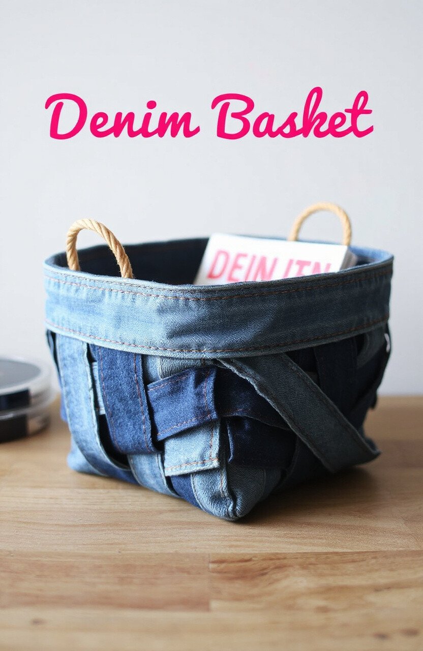 Organize your home with a chic denim basket. Cut and weave strips of denim to create a sturdy and stylish storage solution. Perfect for holding magazines, toys, or craft supplies.