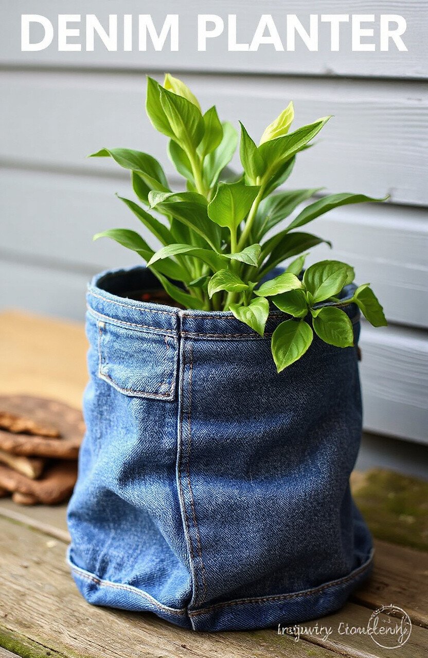 - 🍂 Unique & Gorgeous No-Sew Recycled Jeans Planter from hometalk.com.