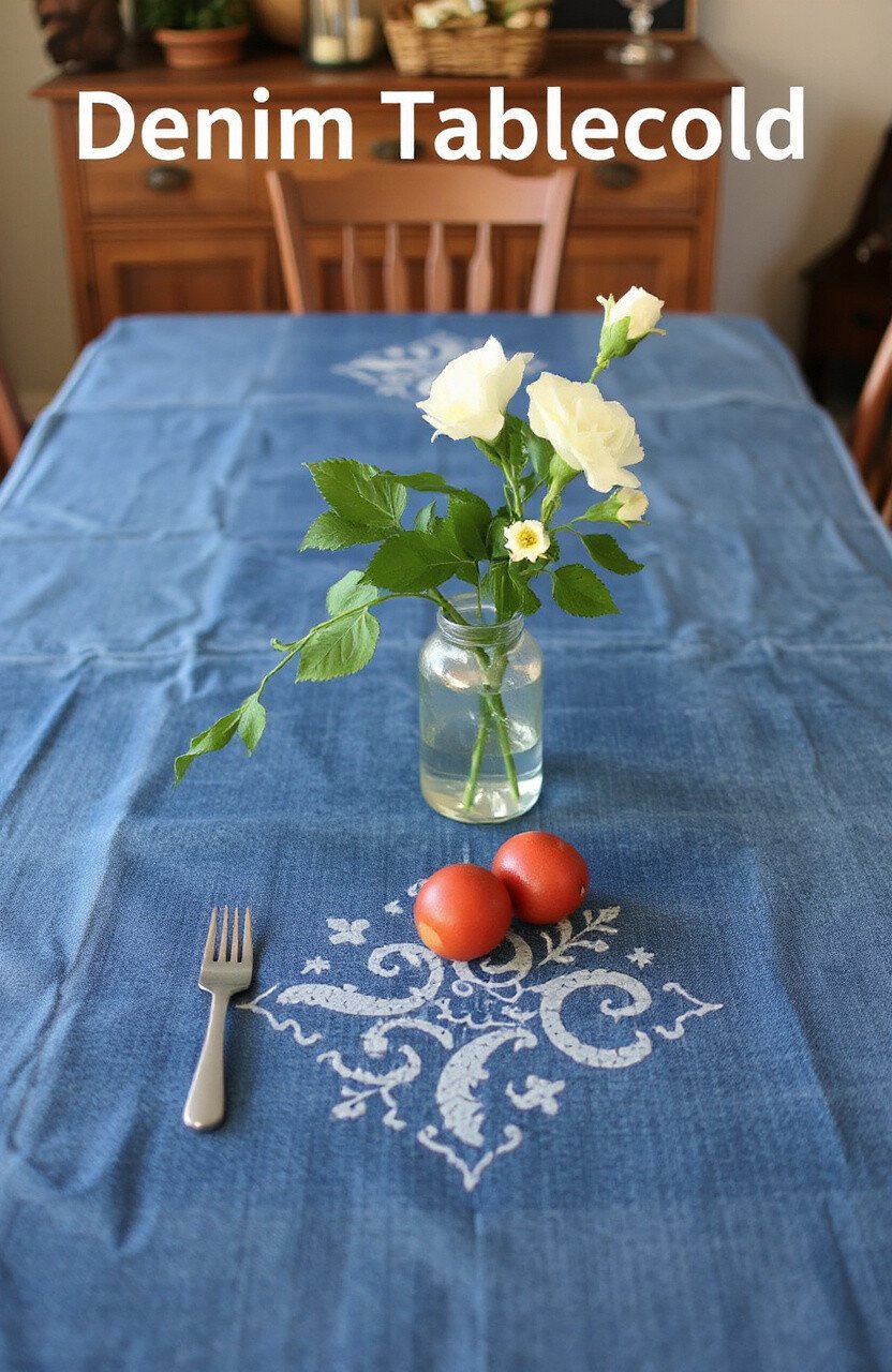 Make a statement with a denim tablecloth. This project is perfect for adding a unique and rustic touch to your dining table. Denim is a durable material that can withstand spills and stains.