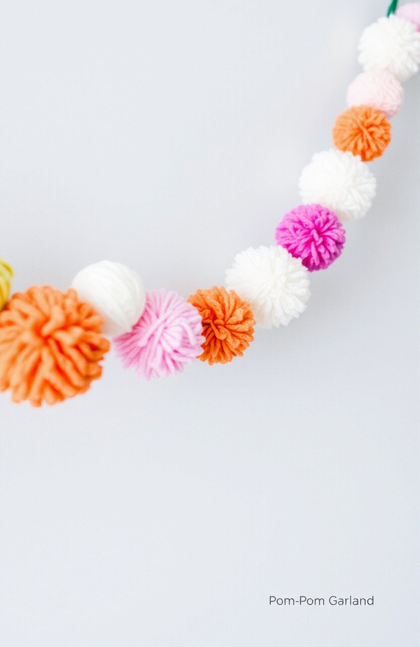A pom-pom garland is fluffy and fun. It’s great for kids’ rooms or parties.