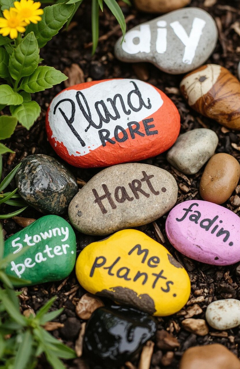 Get some smooth stones and paint them with bright colors. Write names of plants or motivational words.