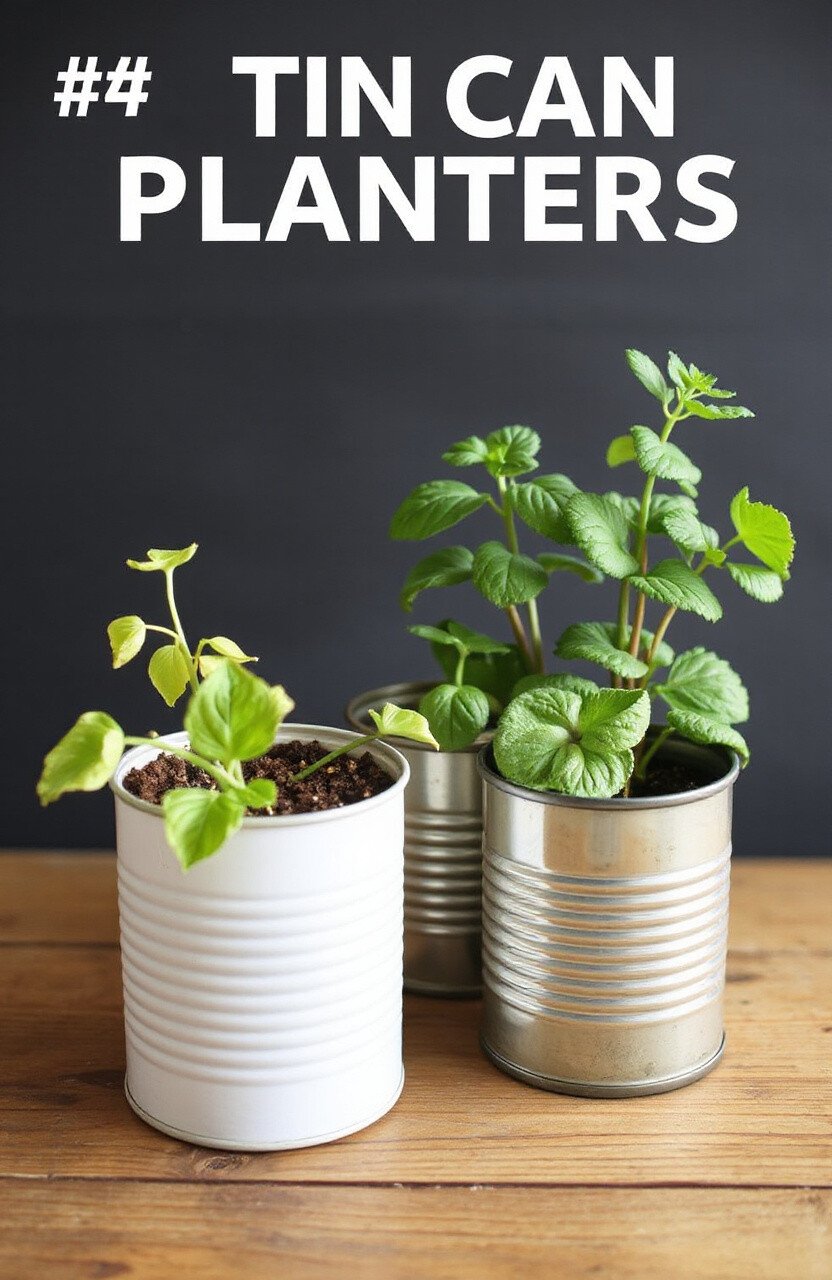 Tin can planters are eco-friendly and charming. They’re perfect for a small herb garden.