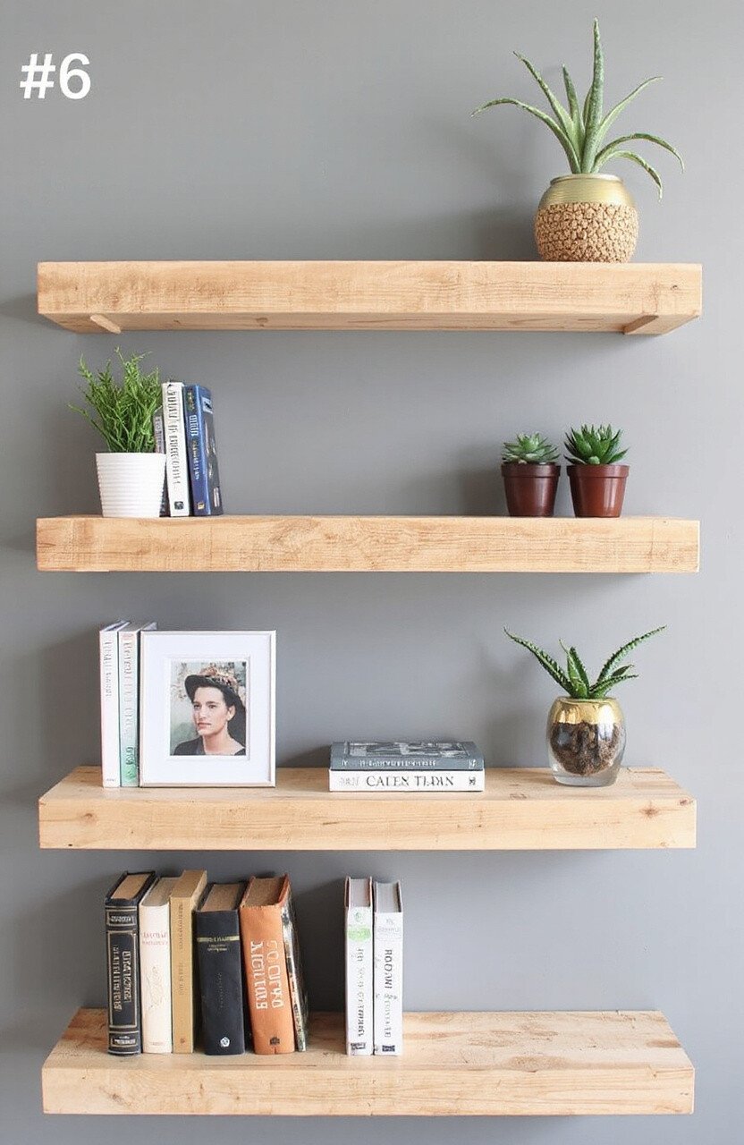 Pallet wood shelves are rustic and chic. Use them to display books or plants.