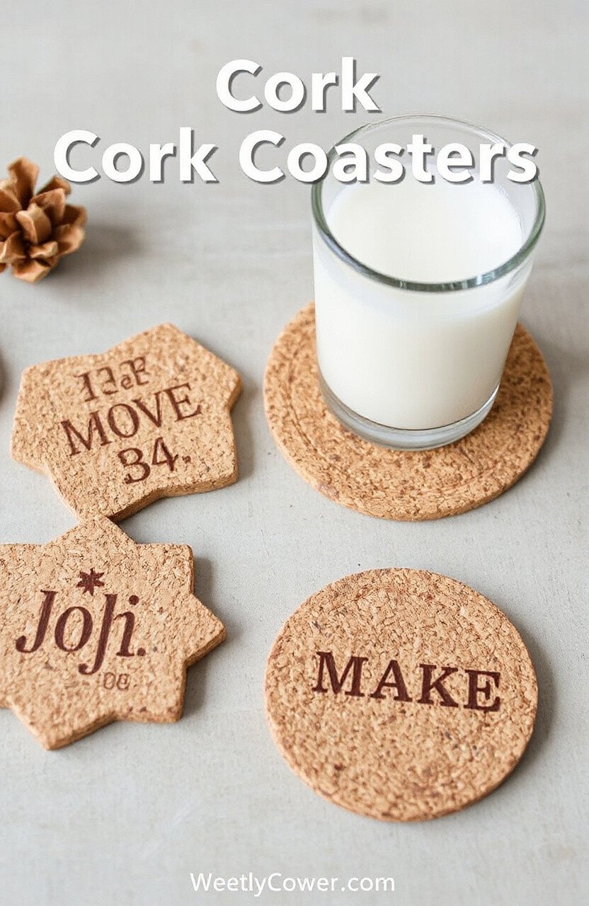 Cork coasters are functional and eco-friendly. They’re great for protecting surfaces.