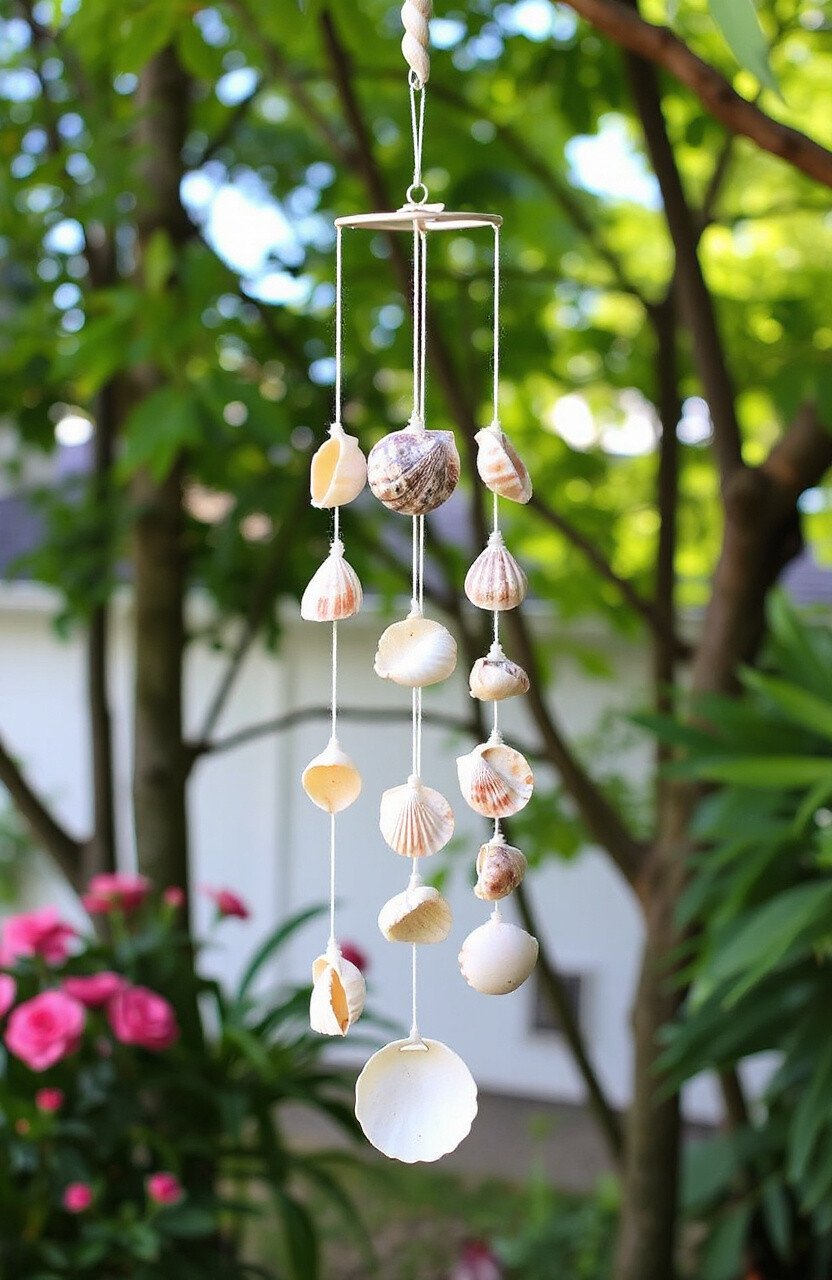 A seashell wind chime is soothing and coastal. It’s perfect for porches or gardens.