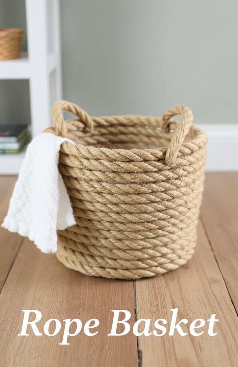 A rope basket is rustic and handy. It’s perfect for storing blankets or toys.