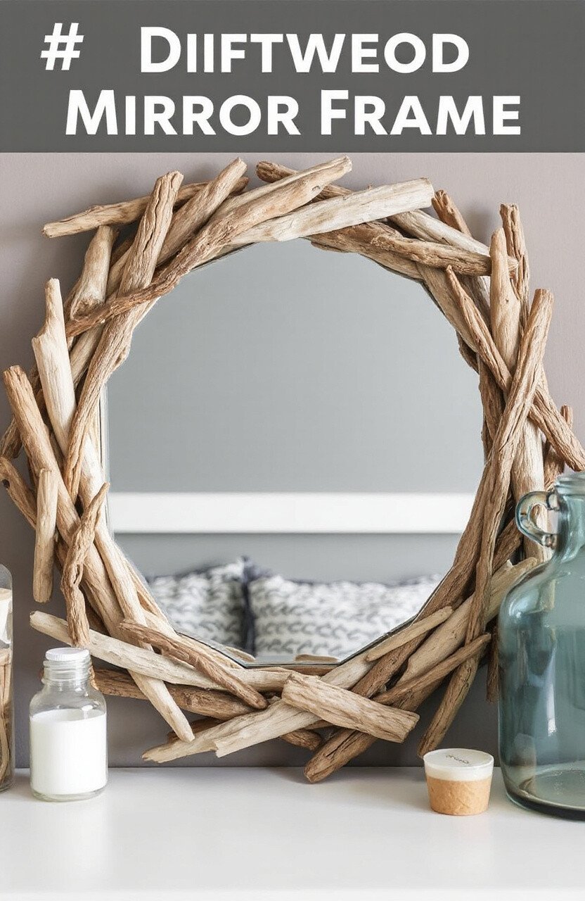 Gather driftwood pieces and hot glue them around a mirror frame. Arrange them in a way that looks balanced.