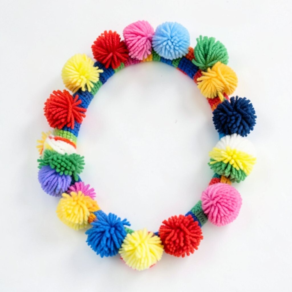 Bring a pop of fun with a pom-pom headband. Create small pom-poms from yarn and attach them to a headband for a playful and colorful accessory.