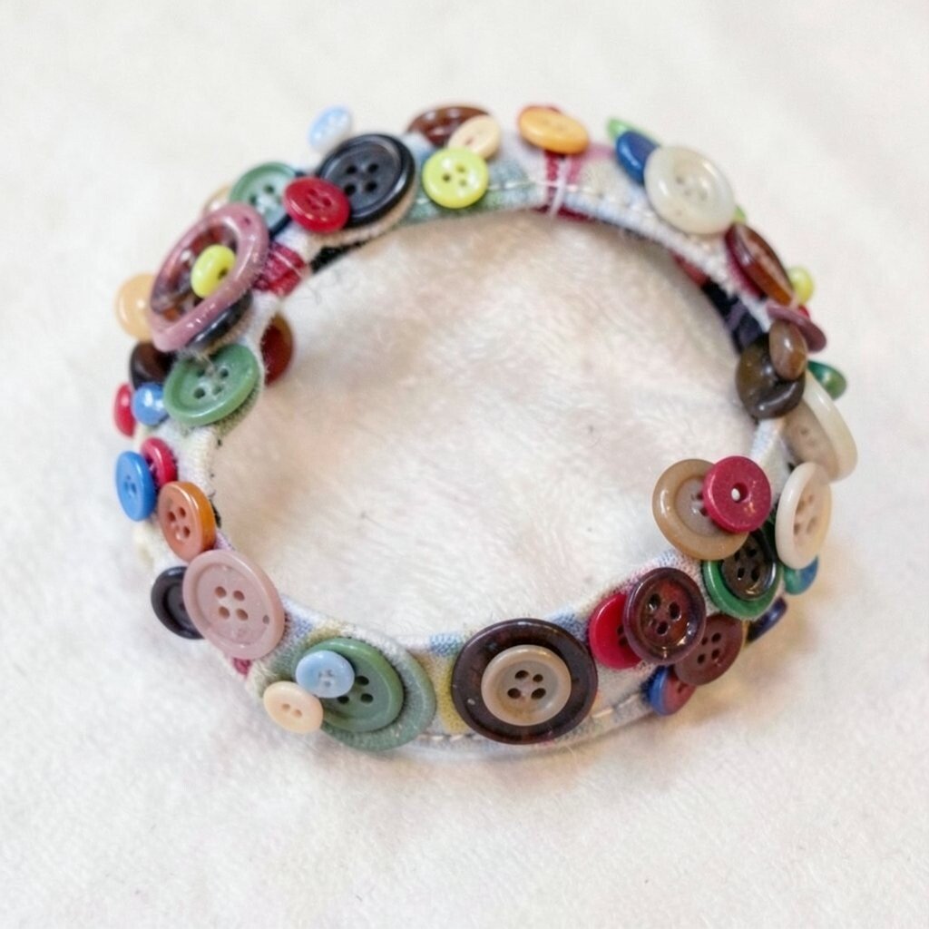 This headband is a conversation starter, with its unique and personalized design. It’s a fun way to repurpose buttons from old clothes.