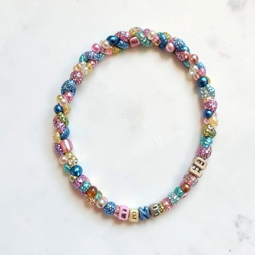 Suggestion: Use elastic thread for a comfortable fit. Personalize by using beads with letters to spell out your name.