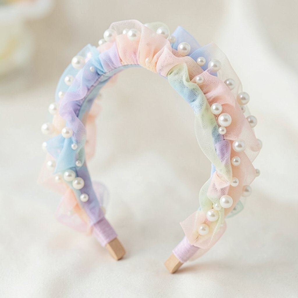 Suggestion: Use pastel-colored tulle for a soft, romantic feel. Sew pearls securely to ensure they stay in place.