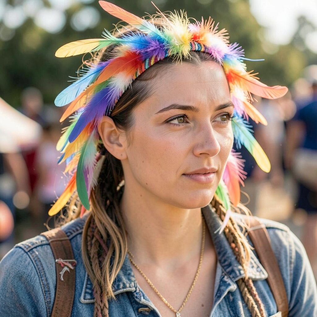 Channel your inner bohemian with a feathered headband. Attach colorful feathers to a headband for a free-spirited and ethereal look.