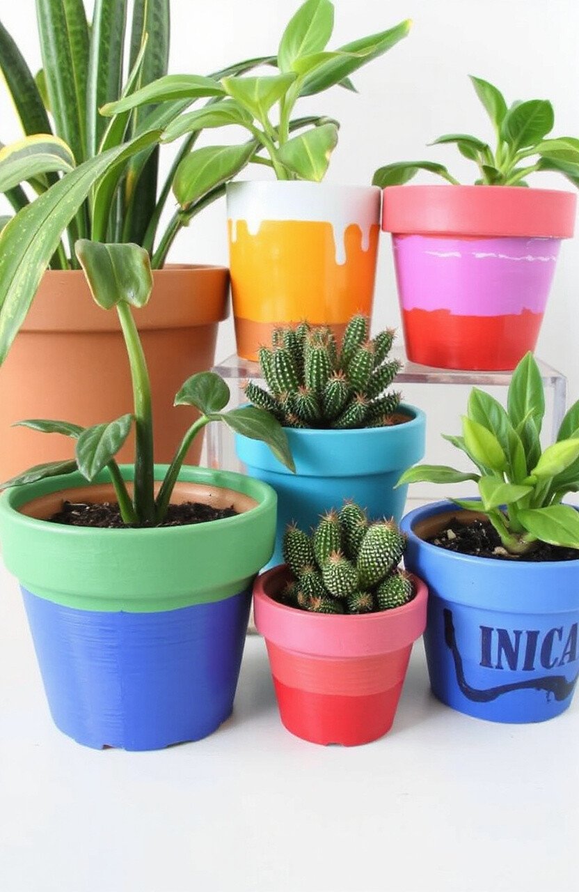 Add a splash of color to your home with painted plant pots. Grab some clay pots, and with a few strokes of acrylic paint, you can create a masterpiece. This is an easy way to match your decor with the seasons or your mood.