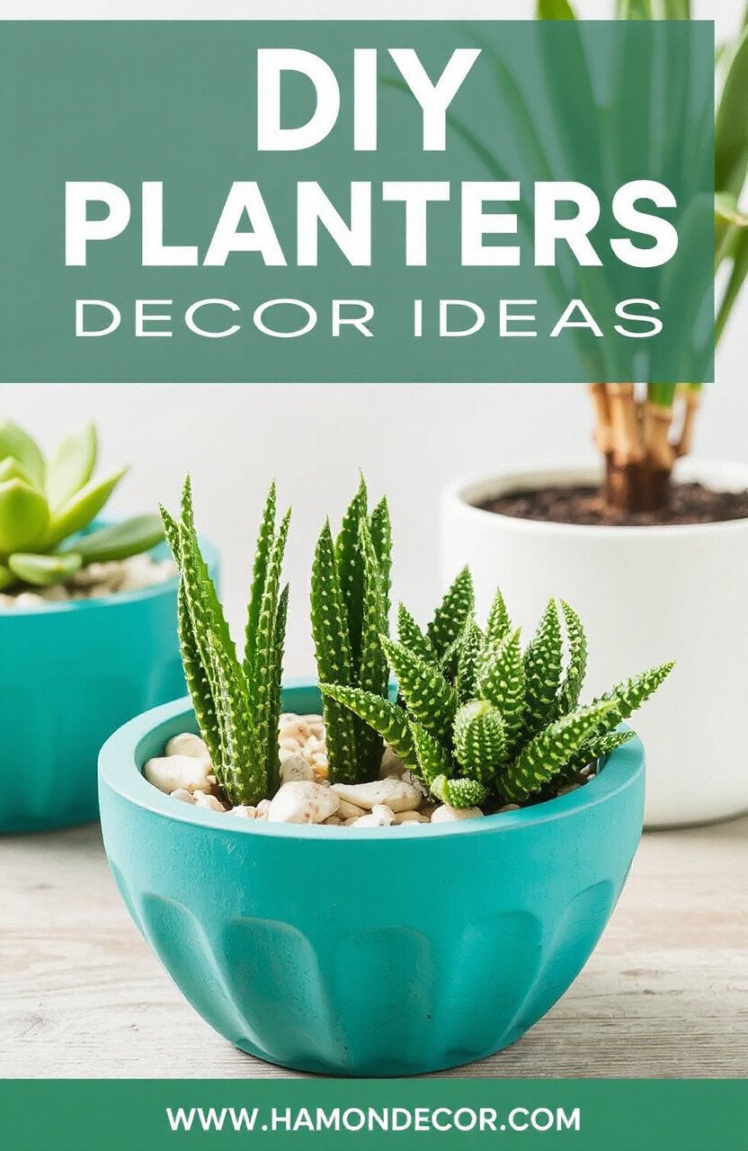 Make modern planters using concrete and molds. These planters are sleek and durable. Perfect for indoor plants or succulents.
