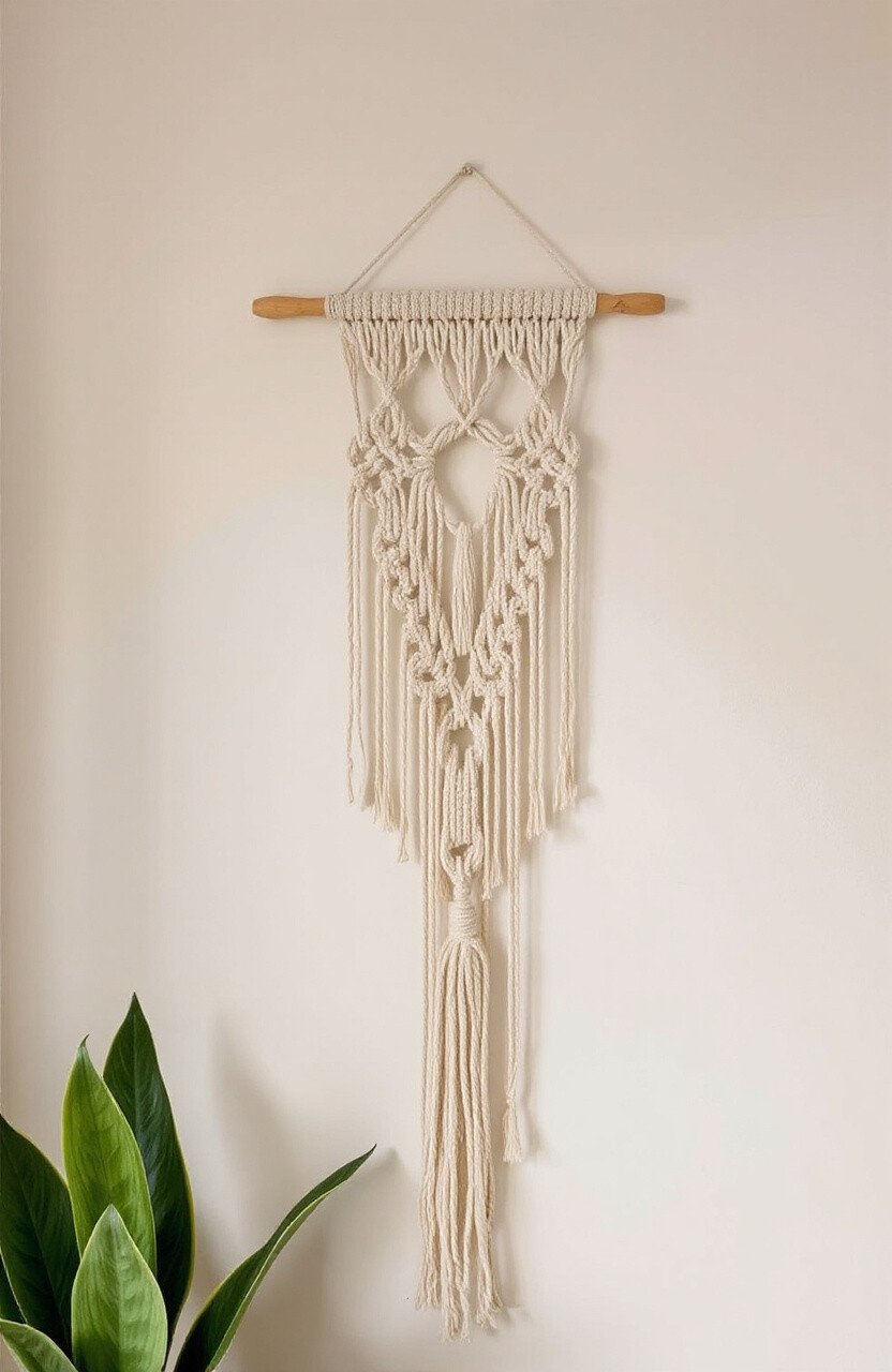Macramé wall hangings add a bohemian vibe to any room. All you need is some rope and a wooden dowel to start knotting. There are countless patterns to try, from simple to intricate designs.
